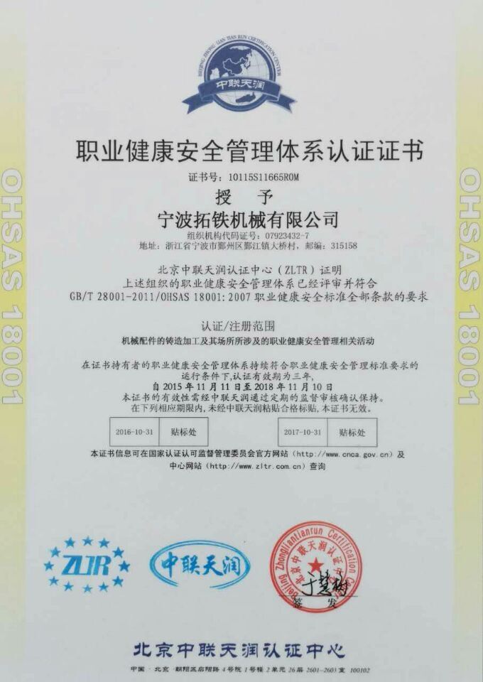 2015年11月,星空体育全站_星空(中国)机械获得国家ISO9001质量管理体系认证,ISO14001环境管理体系认证和OHSAS18001职业健康安全管理体系认证。